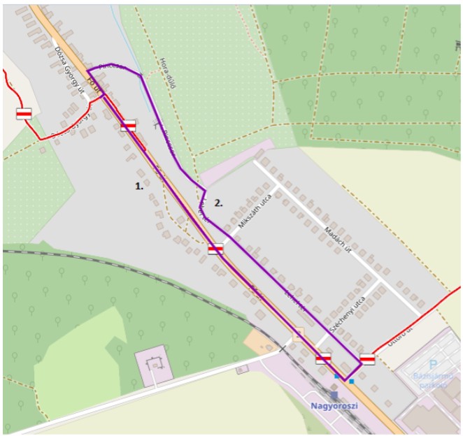 Megoldási javaslat: Megszüntetés és új nyomvonal kijelölése. Pl. a "Zöldút" nyomvonala a Pincesoron. (2.)